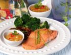 Saftiges Lachsforellenfilet aus dem Backofen mit Ananas Chilidip genießen