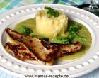 Köstliches Fischfilet mit grüner Kräuter Soße und Pinienkernen