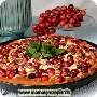 Köstlicher Obstkuchen mit Hefeteigboden und frischen Trauben belegt