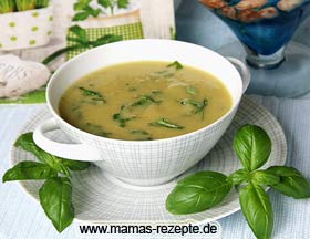 Bei dieser cremigen Gemüsesuppe werden Zwiebel, Kartoffeln und Staudensellerie zunächst in Brühe weichgekocht, anschließend mit dem Fruchtfleisch einer reifen Avocado, reichlich frischen Basilikumblättern, Limettenschale und Schlagsahne oder pflanzlicher Kochsahne mit dem Stabmixer püriert, mit Gewürzen und Limettensaft pikant abgeschmeckt und kurz vor dem Servieren nochmals einmal aufgekocht oder gut erwärmt.