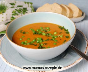Bei 4 Personen enthalten 1 Portion Kartoffelsuppe mit Roten Linsen ca. 240 kcal und ca. 6,3 g Fett