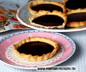 Bei diesen auf französische Art hergestellten Schokoladen Tartelettes werden zuerst aus Mürbeteig hergestellt, kleinere Törtchen Böden blind gebacken, anschließend gut abgekühlt mit einer rasch selbst gemachten schnittfesten Schokocreme (Ganache) gefüllt.
