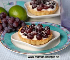 Bei 10 Stück Weintrauben Tartelette mit Limetten Joghurtcreme enthalten 1 Stück ca. 290 kcal und ca. 15 g Fett